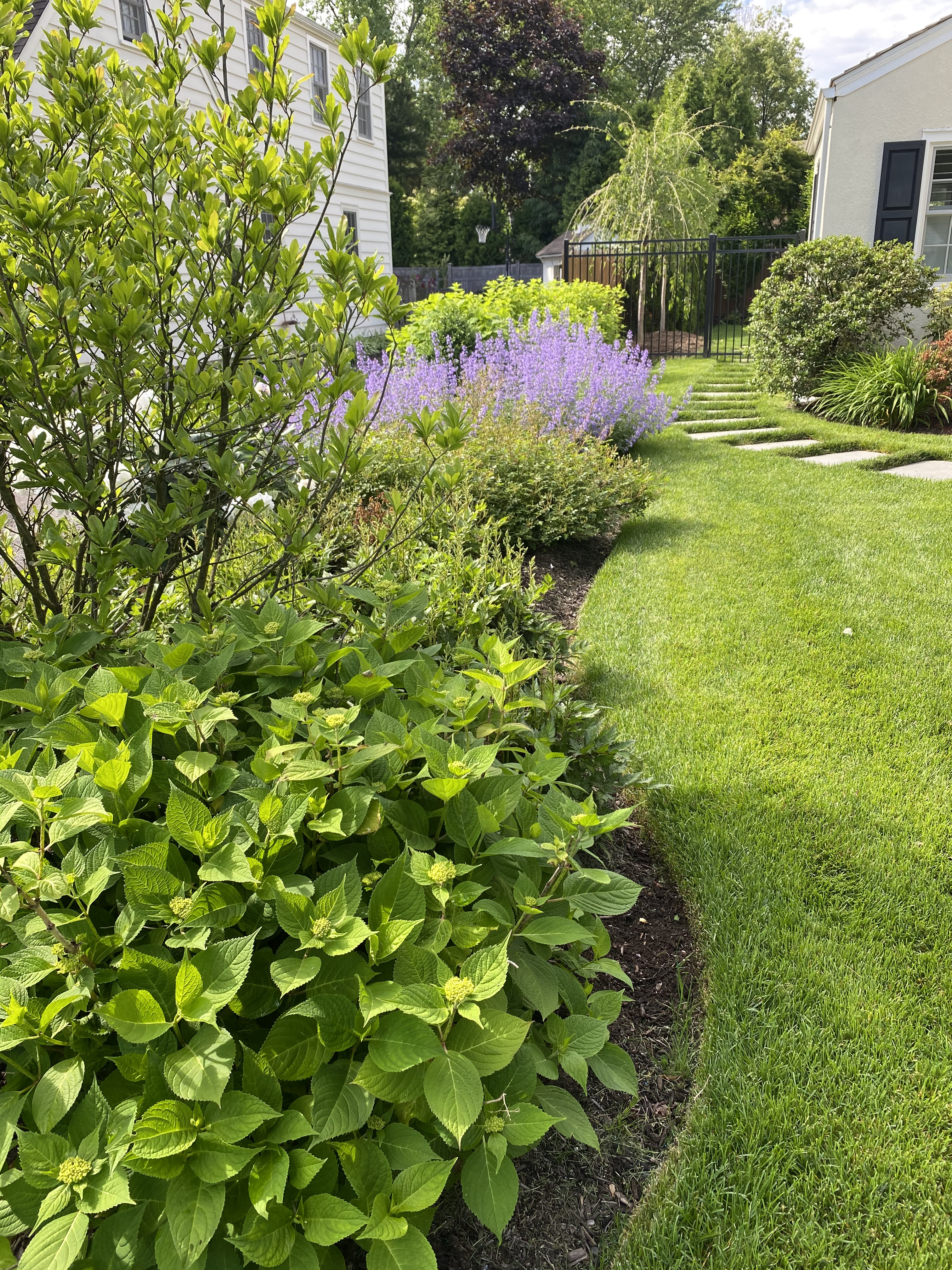 The finished garden provides year-round beauty with minimal upkeep. The space now feels vibrant and intentional in every season, enhancing curb appeal and giving the homeowners a garden they can enjoy all year long.