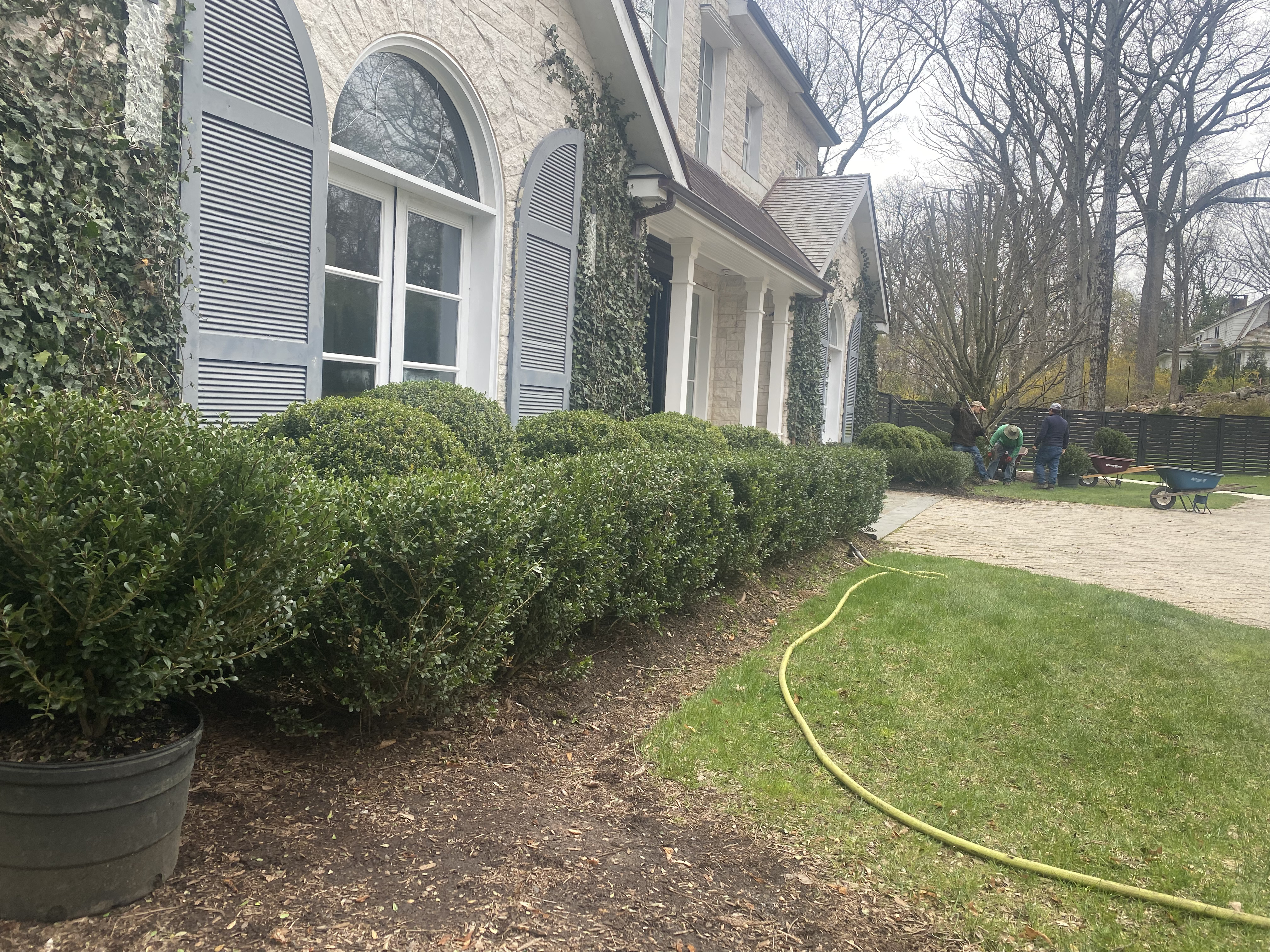 We installed a green hedge along the house to provide visual coverage beneath the deck and improve the overall structure of the landscape. A new lawn was added to restore a healthy, uniform green appearance and enhance the usability of the space.