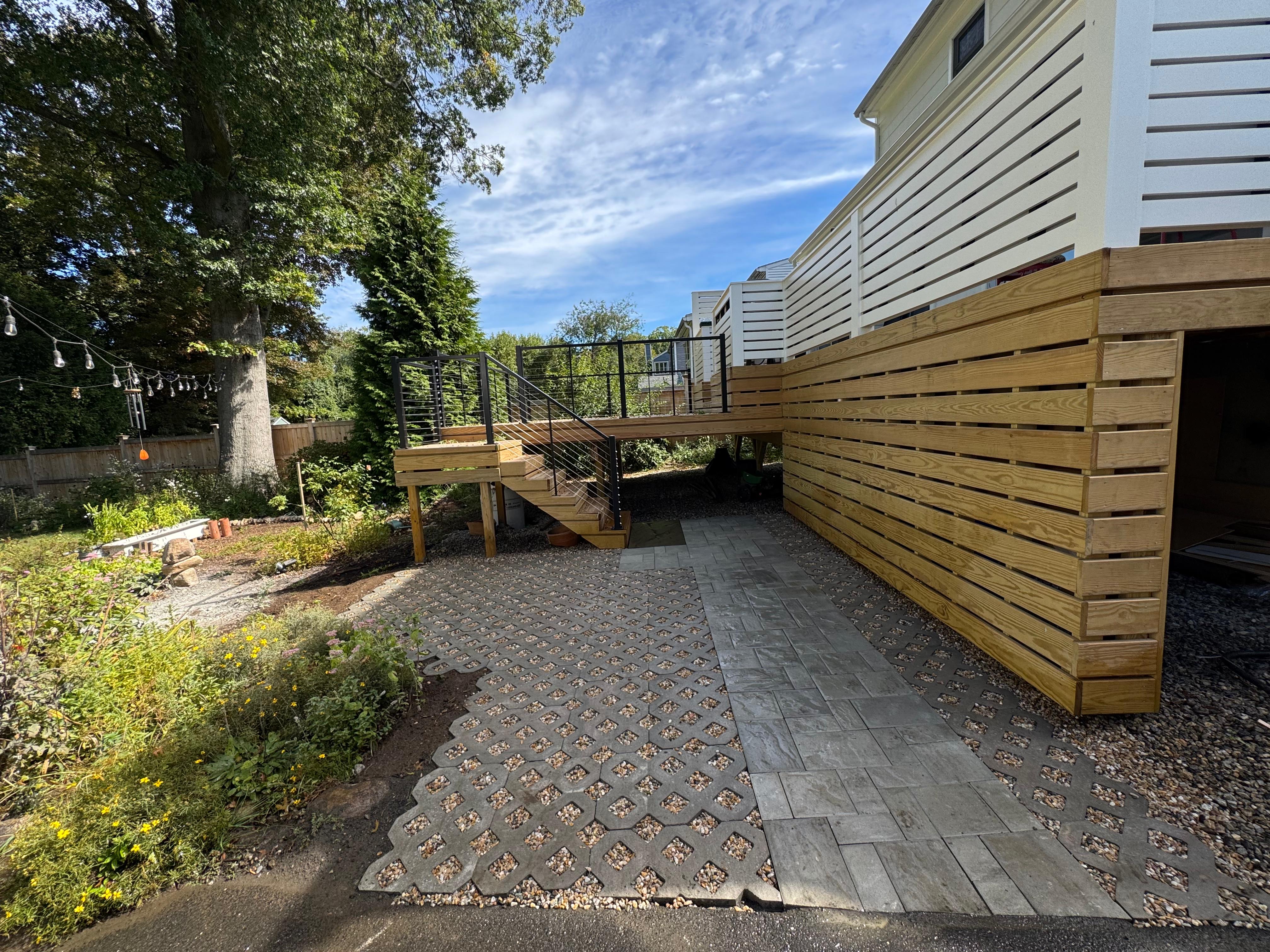 We designed and constructed a smooth, step-free ramp to allow safe and easy wheelchair access throughout the space. The ramp was carefully graded to meet accessibility needs without compromising functionality. We also removed the existing retaining wall and replaced it with a new, durable structure, installing larger drainage pipes to improve performance and longevity.